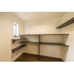 施工後はキッチンの裏にパントリーを設置し、タップリ収納できるスペースを確保。 冷蔵庫や家電製品も隠して収納できるようになっています。