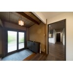 施工後は玄関ドアに大きなガラスをはめ込むことで光を取り込み、明るい玄関になりました。