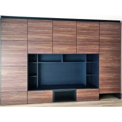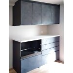 縦のスペースを最大限生かしたっぷり容量の収納棚でとってもお洒落なリビングに。 キッチンにはブラックがカッコイイ、高級感溢れるカップボードをご提案。 これからの思い出をいっぱい詰め込める収納たっぷりの素敵なお家に仕上がりました。