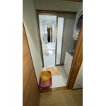 洗濯機の後ろに大きな窓があり、単層ガラスだった為、断熱性も悪く、とても寒い空間となっておりました。ガスの衣類乾燥機を設置するのでそこまで大きな窓は必要ないとのことでしたので、採光の観点から窓を設置致しました。また浴室からのアプローチも改善出来てバリアフリー化出来ました。