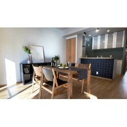 ネイビータイルがアクセント!広さと利便性を両立したお家