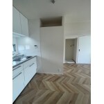 現状の間取りは2DKでした。 6帖和室の1部屋を4.5帖の子供室と約2帖のウォークインクローゼットにいたしました。 リビングを隣接する部屋とは一部屋続きにして、広いLDKにすることができました。 新たに設けたウォークインクローゼット内は、大容量のL型のハンガーパイプ付きの棚を造作いたしました。 床はヘリンボーン柄、天井壁はシンプルに白の内装仕上げのため、リフォーム前に比べると明るい印象に生まれ変わりました。 お近くに実家があるとのことでしたので、一部の家具はそのままにして、他の家具とご家族は一時的に実家にお引越ししていただきました。その分短期間で工事を完了することができました。