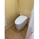 お掃除のしやすいフチなし形状。 また便座部分もお掃除のしやすいようにリフトアップする機能まで付いております!