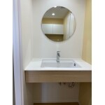 既存は洗面器のサイズも小さく、水の飛び跳ねなどもありました。 収納も決まったサイズのものしか置けず、不便を感じておられました。