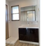 サイズアップも含め、スライド収納に仕様変更し、ミラーキャビネットを三面鏡に仕様変更しました。 クロスの貼り替えと床には塩ビタイルを貼り、ダウンライトも設置しましたので、洗面室自体が明るくイメージもガラっと変わったと思います!