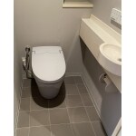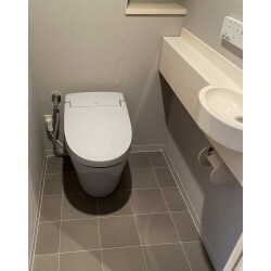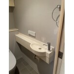 水垢や汚れが落ちやすいアクアセラミック素材でフチレス形状の、お掃除が楽になる商品をご提案しました。 従来のトイレに比べ節水もでき、タンクレスなので空間も広々感じます。 手洗いはそのまま利用することでお値段を抑えることができるので、クロスとクッションフロアの交換をご提案しました。