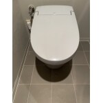フチレス形状で、水垢や汚れが落ちやすいアクアセラミック素材でお掃除が楽になる商品へ交換しました。 また、従来のトイレに比べ節水もでき、タンクレスでコンパクトサイズなので空間も広々感じます。