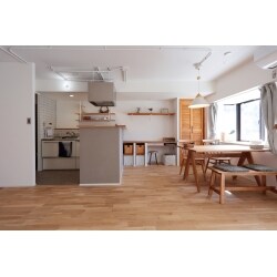 コンパクトなシステムキッチンと雰囲気をかえるクロス