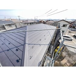 今のお宅にどのくらい住みたいかをお聞きしたところ、自分の子供の代まで長く住みたいということでした。ならば屋根の塗装より屋根カバー工法の方がランニングコストが良いので、屋根カバー(ガルバリウム鋼板)工法での工事という流れになりました。また今回は軽量で耐久性・遮熱性・断熱性に優れ長持ちする、スーパーガルテクトという屋根材ををご提案させていただきました。