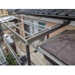 テラス屋根の両サイドに雨水などが侵入しないように同じ波板が施工してありましたが、こちらも経年劣化の影響で傷んできていました。
