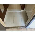 シンプルな柄に張り替えることで広く感じ、すっきりとした印象になりました。 玄関框・玄関付け框・土間タイル工事を行いました。