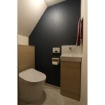 収納とトイレを一体にすることで階段下でもすっきりとさせることができました。 入口も引戸にして出入りもスムーズになりました。