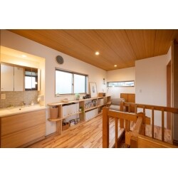 キッチンと行き来きできる洗面所にしました。