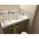 ウッド調のカウンターが味わい深く魅了する洗面台