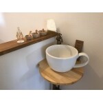 コーヒーカップのボウル、タイルはお客様支給 【工事内容】 床張替え、クロス全面張替え、笠木張替え、カウンター塗装、タイル施工