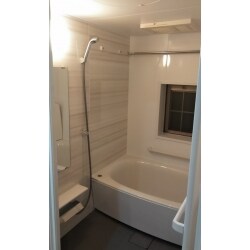 設備も古かったため、設備交換することをご提案させていただきました。 浴槽の素材には、水や汚れをはじきやすい撥水・撥油成分を配合しています。 床は滑りにくく乾きやすい、掃除のしやすいデザインになっています。