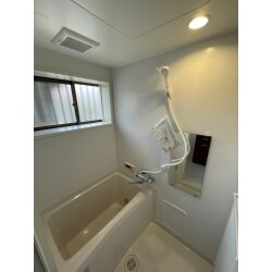 一面タイルだった浴室にパネルの施工を行い、同時に浴槽の本体交換や換気扇の設置も行いました。白で統一させ清潔感のある印象に。