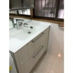 洗面はスッキリ、軽快な感じで清潔感を出しました。