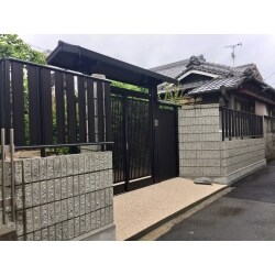 - 広い敷地を囲むフェンスと格子戸の門構えを改修する