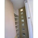 壁とガラスブロックでシューズクロークを区切り、パントリーを造作いたしました。 画像はキッチンから撮影しています。 ガラスブロックはお客様のご希望の一つで、ご満足いただけてよかったです。