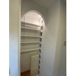 玄関のシューズクロークが長細い構造で、奥の部分が使いづらいというのがお客様のお悩みでした。 そこで、シューズクロークを分割し、奥の部分の壁を開口することでキッチンと繋げてパントリーにしたいというご要望でした。