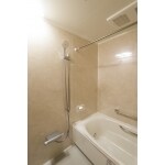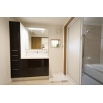 壁のお色もベージュ系を採用することによって全体的に暖かみのある空間になりました。 収納や鏡をなくしシンプルなレイアウトにすることでお手入れも簡単にしていただけます。