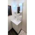 シンプルライフの方にはおすすめ、1面鏡で身支度に使うものがすぐ取り出せる洗面台です。 壁も天井もホワイトカラーにリフォームされてとても空間が広く、明るくなりました。