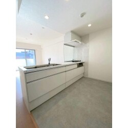 L社のリシェルSIを設置いたしました。 レンジフート側にある壁を無くしガラスにすることで、より開放感のあるキッチンになりました。また機能面も充実しており、お掃除がしやすいワークトップとガスコンロ、洗い物の際に便利な広々としたシンクと深型食洗器もあります。