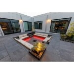 家の中心に位置する中庭は地面を掘り下げ、各居室からの目線を遮らないように工夫しています。7色に変化する間接照明を使用し、居室からも変化を楽しめるギミック付き。LDKはキッチンを中心に配置しました。天井の梁の存在を逆手に取り、照明を使うなどし、空間デザインへ活かしています。 各所に造作家具を設置し、見せる収納、隠す収納を使い分け。暑さ寒さ対策としてサッシを交換し、壁断熱材を充填して断熱性能を向上させました。