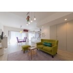 和室をなくしリビングとして取り込み3LDKから2LDKに変更。カラフルなインテリアが映える広々とした空間。