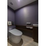 トイレはタンクレスにしたいというご要望から、ご夫妻がお選びになったTOTO「ネオレストAS1」。洗面室と同じクロスを張り、シックなパープルのクロスが落ちついたモダンな雰囲気です。