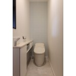 アイボリーと木目で優しい雰囲気のトイレ空間に
