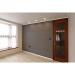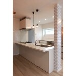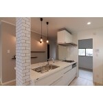 リフォームプランでは和室を解体してリビング・ダイニング・キッチンが一体となった開放的な間取りに。対面キッチンから部屋中を見渡す事ができます。インテリアについては、白×グレーをベースに、レンガ調のクロスやアイアン照明などブルックリンテイストを上品にミックス。さらに間接照明でリラックスできる空間となっています。