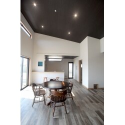 吹き抜けのリビング:珪藻土仕上げと梁を見せた大空間LDK