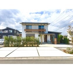新築後、外構計画についてどの様にしたら良いか、 具体的なイメージがつかず、悩んでいました。 駐車場とウッドデッキが欲しいこと、 外からの視線を避けられるような庭を希望しました。