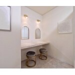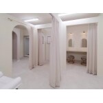 目を引くアーチの開口を採用し受付のエントランス、施術ルームとドレッシングスペースに間仕切り壁を。
