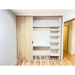 収納が無い。部屋(洋室)が狭くなってもいいので、収納を作りたい。収納内部は洋服が掛けられるハンガーパイプと可動棚を希望。 壁側のクロスをもっと明るい色にしたい。