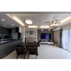 垂れ壁を撤去しフラット対面のキッチンにして、開放感のあるLDKにしたい、LDK横の寝室は開口を大きくして、一体感のある空間にしたい、海外での生活が長かったので、既存の雰囲気も活かしつつ「ブリティッシュテイスト」を加えた新旧調和のとれた内装にしたい、とのご要望でした。