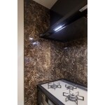 ブリティッシュテイストの特徴でもある重厚感を演出できるよう、キッチンカウンターにはトクラス【ベリー】の「テノール」を提案しました。 「テノール」は基材となる人造大理石に、特殊配合の樹脂を何層にも重ねて加熱しているため、従来の人造大理石を超える「耐衝撃性」「耐汚染性」があります。 堅牢な南部鉄器を思わせる「アイアンブラック」を採用し、奥深い美しさを演出しました。 周りの壁を撤去しているので開放感があるため、深い色味でも重くなりすぎることなく理想の重厚感を遺憾なく表現したキッチン空間となりました。