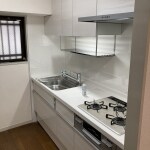 元もシステムキッチンでしたが、壁はタイル張りでお掃除が大変で、ガスコンロが少し左に寄っていて調理スペースが狭かったです。