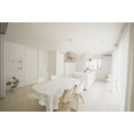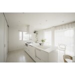 まるで海外住宅ような白い空間にマッチした、真っ白なアイランドキッチンになりました。デザイン性だけでなく、美しい白を長続きさせ、家事の負担を減らせるよう各所清掃性にもこだわってご提案させていただきました。