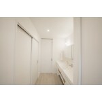 鏡を横に長く設置し、数人で同時に使っても混雑しない洗面をご提案いたしました。収納棚は作りつつ、洗面台の下のスペースは敢えて引き出しは少なめにしています。そのためライフスタイルによって自由にレイアウトを変えることが可能になりました。