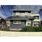 以前に外観をそのまま活かして、色調を大胆変更 しました。 まずは、高圧洗浄で汚れを落としてから、外壁・ 軒天・雨樋・破風板・雨戸・バルコニー・ 基礎土台水切りまで、それぞれの箇所に適した 塗装材を2度塗りしています。