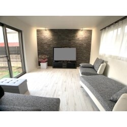 敷地が広いので、増築でリビングを広げました。職人がしっかりとした骨組みを作りましたので、丈夫な部屋が出来上がりました。壁の一面に外壁材を使用したことにより、立体的な空間となりました。
