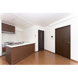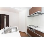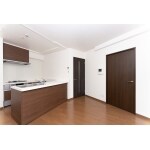 ストーンを贅沢に使ったハイカウンターを造作した対面式キッチン