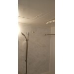 角度のついたシャワースライドバーは、シャワーヘッドを上部にスライドさせるとオーバーヘッドシャワーのように使うことができ、空気を含んだ大きめの水滴が心地よいです。 電気式の浴室暖房乾燥機に交換しました。