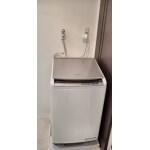 洗濯水栓は露出タイプに変更し、洗濯パンを交換しました。 また、クロスとクッションフロアも交換し、新しい空間へと生まれ変わりました。 洗面化粧台はL型でしたが、I型に交換。手前にあるリネン庫は撤去し、洗面横にトールキャビネットを設置しすることで、たっぷりの収納力と広々空間を両立しました。