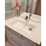 キッチンと同時に、ショールームで洗面化粧台も見て頂きました。エスクアのクリスタルカウンターを気に入っていただき、採用になりました。