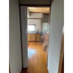 柱に経年のゆがみもあり、扉だとすると補修なども必よであることをご説明しました。 なるべく安く・簡単に終わらせたいとのご要望でしたので何パターンかご提案の上、アコーディオンカーテンで対策することになりました