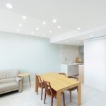 照明の数、位置にもこだわりました。 とにかくお部屋を明るくしたいということで、キッチンを含めて照明の位置を見直し、数も増やすことに。 リビングダイニングには、明るさを調節することができる調光調色タイプの照明を設置しています。